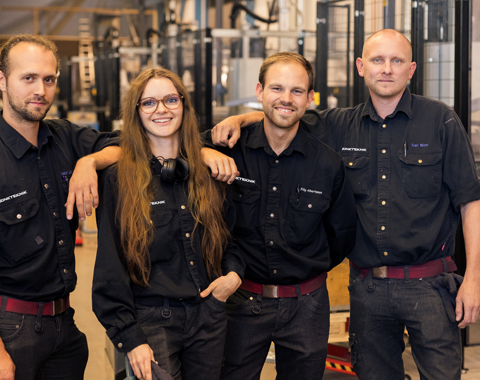 Hos oss på Zinkteknik är det personerna som är företaget. Det är personerna som besitter den kunskap och erfarenhet som krävs för att skapa kontinuitet, vilket leder till hög kvalitet och transparens i alla led. Här samarbetar alla, vi hjälps åt och stöttar varandra. Det skapar en trygghet och tillit som sitter i väggarna. Varför vi som jobbar här väljer att jobba just här, kanske är svårt att svara på. Men kanske är det för att vi är ett lag. Här ser vi alltid till att alla mår bra. Det gör vi genom hejarop och aktiviteter som bygger lagkänsla och kultur. Självklart firar vi tillsammans när vi gjort någonting bra. För oss är det viktigt att fokusera på människan bakom medarbetaren, och att alltid respektera varandra. Ungefär som en stor familj.